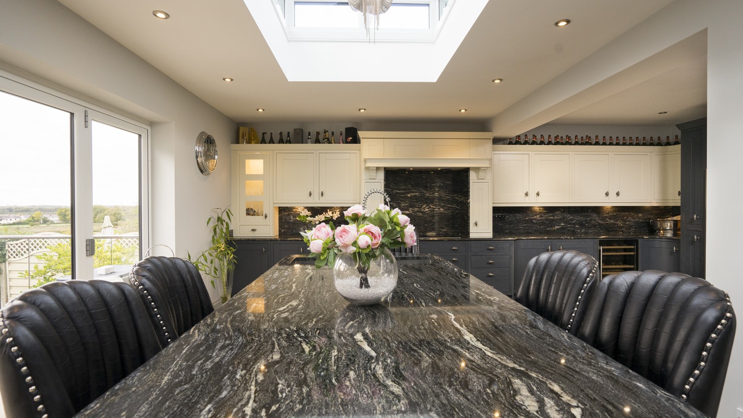 Some of the unique features of this kitchen that really help it stand out include the unique handles, bevelled edge granite, stone floor, internal cupboard lighting, colour matched panelling and much more. It is clear that the homeowner has a clear eye for design and has put together an extremely cohesive design scheme the works really well taking influence from the traditional English kitchen and brining it into the 21st century with modern touches, creating a timeless kitchen that is the perfect place to create many memories with loves ones over future years.